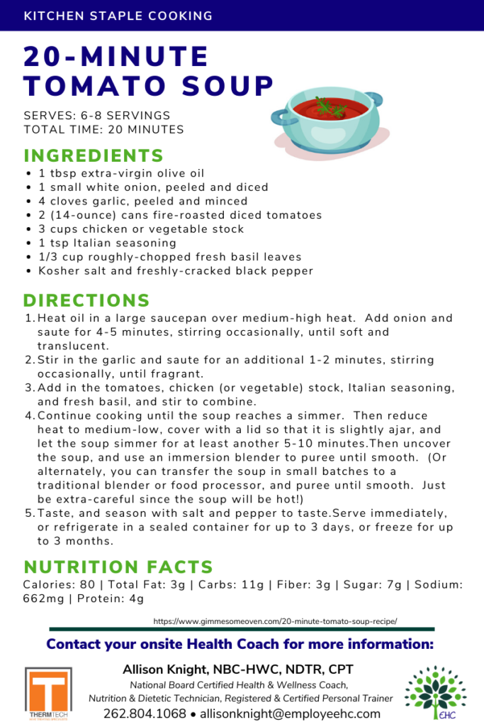 Kitchen Staple Cooking: 20-Minute Tomato Soup Serve with grilled cheese or a deli sandwich and dinner’s done! Source
