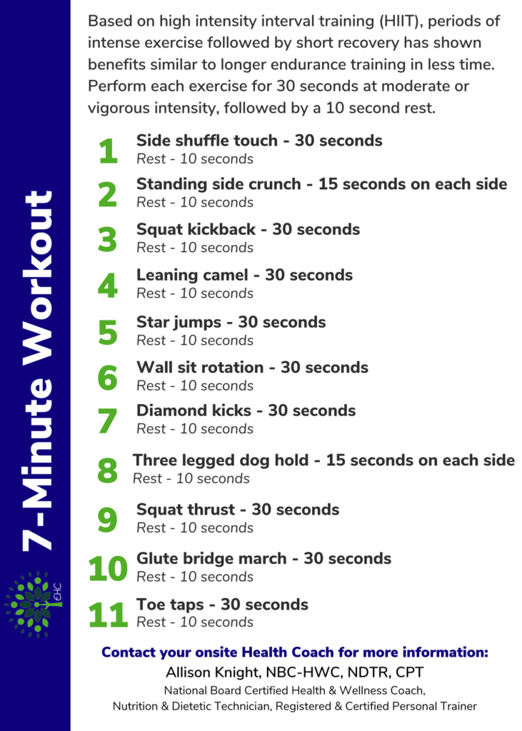 Quarantine Fitness: 7-Minute Workout All you need is seven minutes and your bodyweight to work up a sweat and boost your metabolism. source